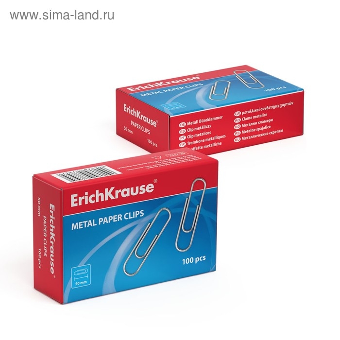 Скрепки канцелярские 50 мм, 100 штук, ErichKrause, оцинкованные, картонная упаковка
