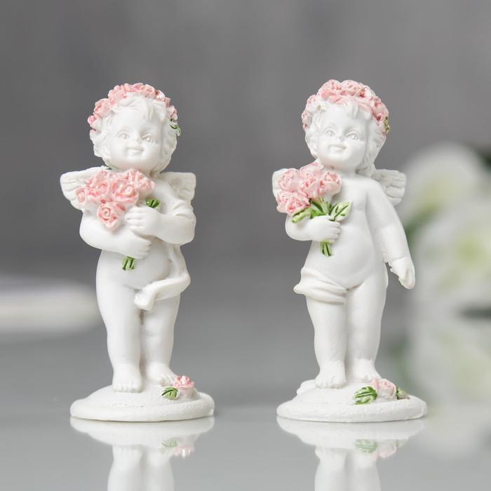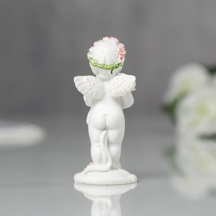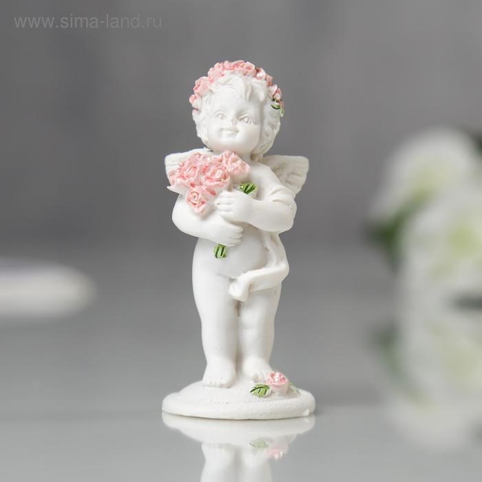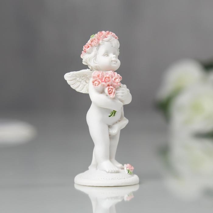 Сувенир полистоун "Ангел в розовом веночке с букетиком" МИКС 6,8х2,8х3 см