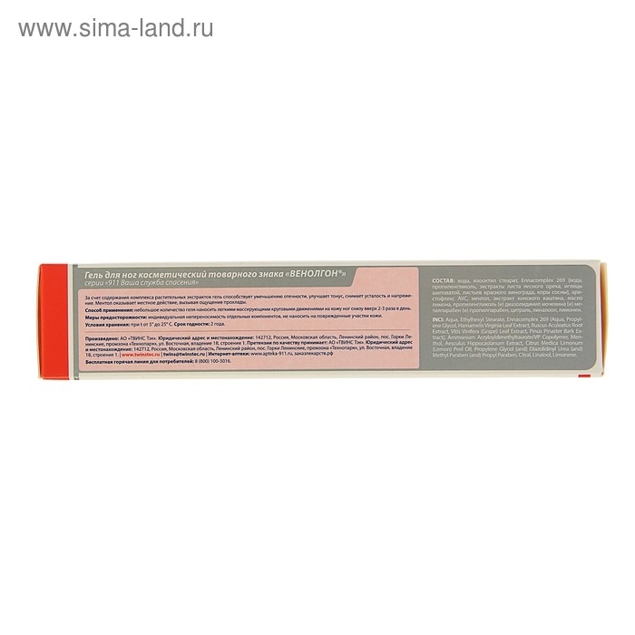 Гель для ног 911 "Венолгон" при тяжести, боли и отеках в ногах, 100 мл