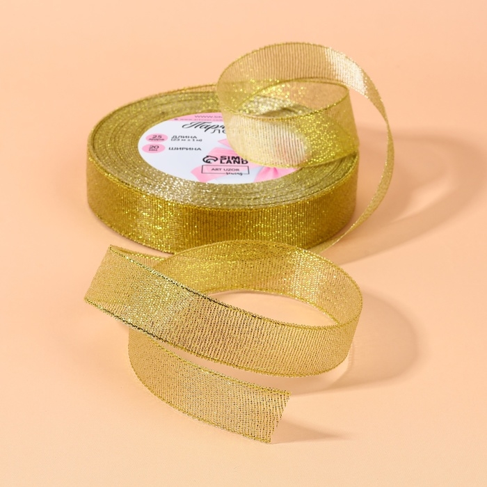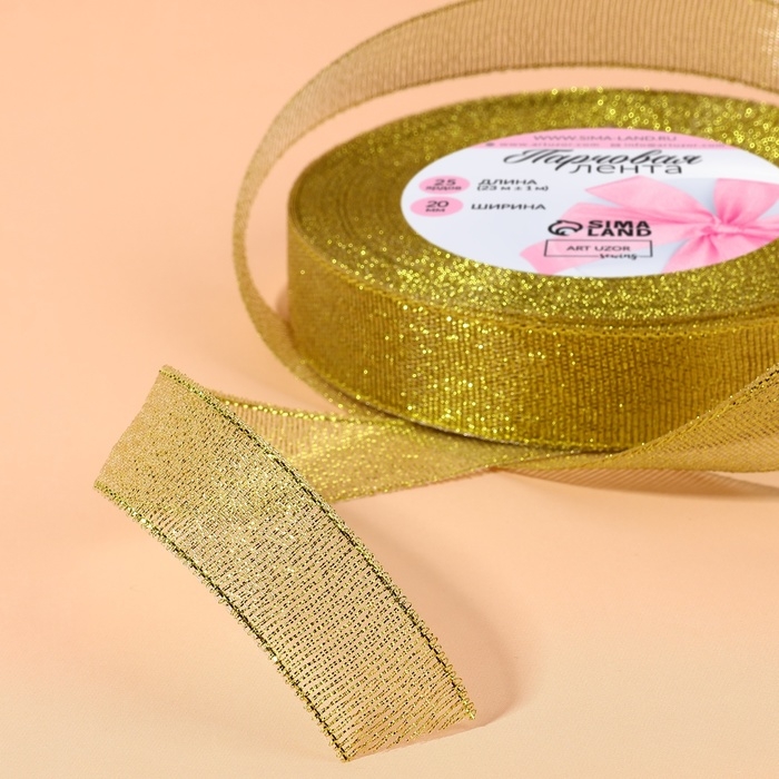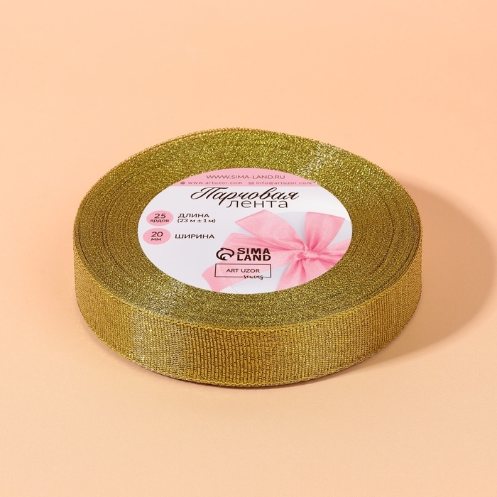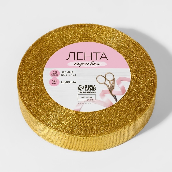 Лента парчовая, 20 мм, 23 ± 1 м, цвет золотой