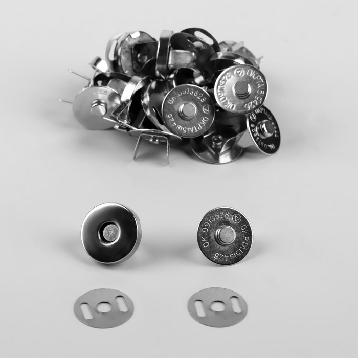 Кнопки магнитные, d = 18 мм, 10 шт, цвет серебряный