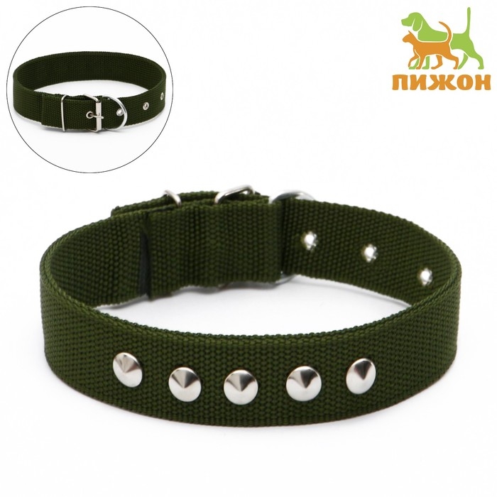 Ошейник клепаный, 48,5 х 3 см, ОШ 31-40 см, полиэстер, тёмно-зелёный