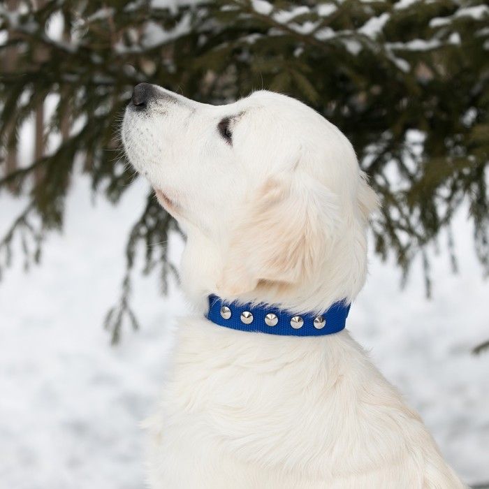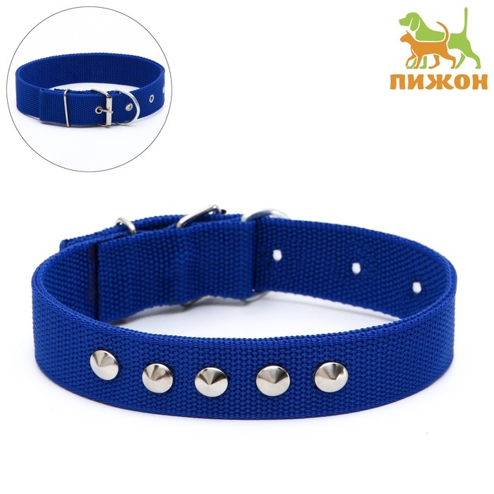 Ошейник клепаный, 48,5 х 3 см, ОШ 31-40 см, полиэстер, синий