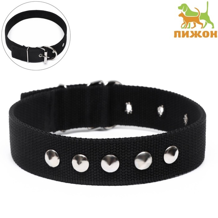 Ошейник клепаный, 48,5 х 3 см, ОШ 31-40 см, полиэстер, чёрный