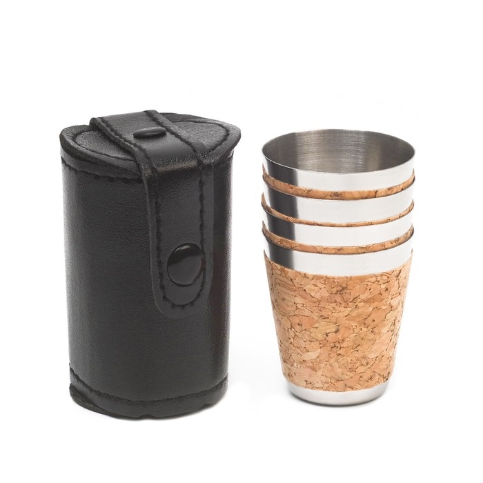 Набор стопок из 4 штук по 30 мл из пищевой нержавеющей стали в компактном чехле. Легкие и компактные, удобно брать с собой на отдых, рыбалку, охоту, природу или в путешествия.
