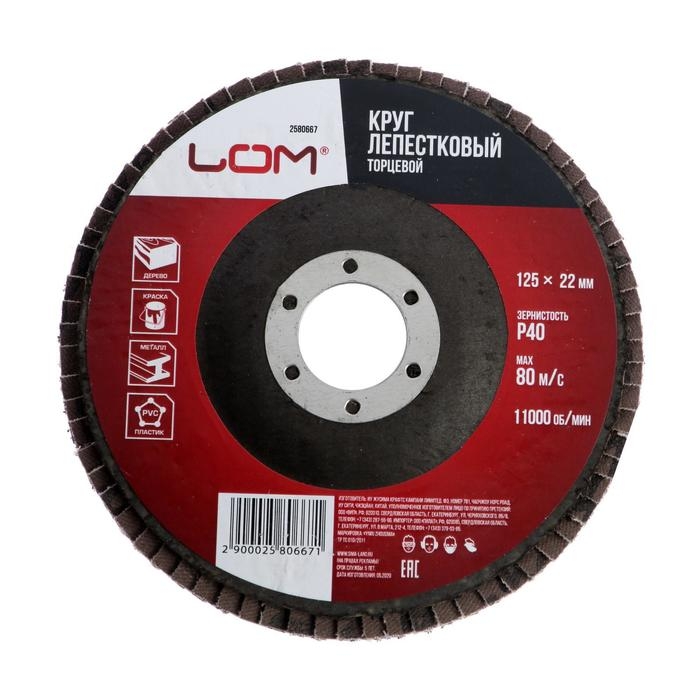 Круг лепестковый торцевой ЛОМ, 125 х 22 мм, Р40