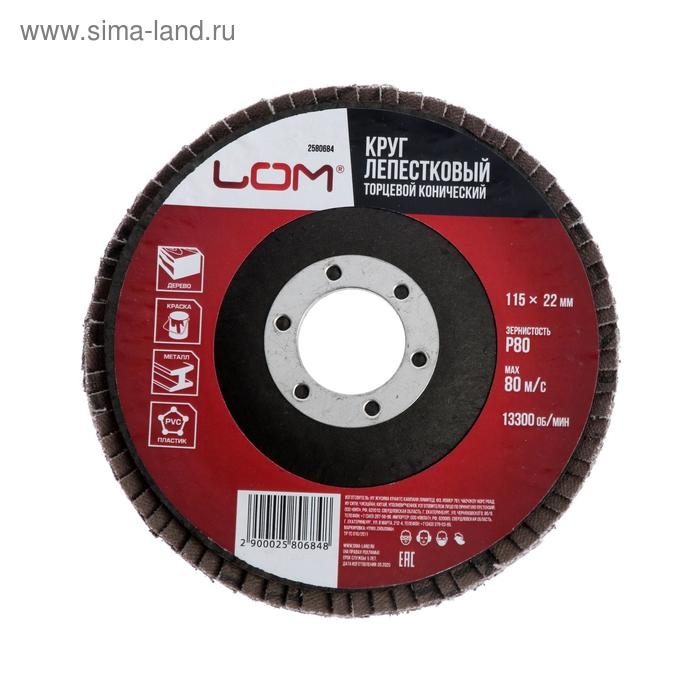 Круг лепестковый торцевой конический ЛОМ, 115 х 22 мм, Р80