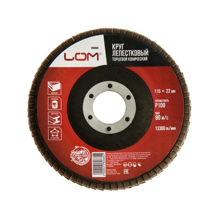 Круг лепестковый торцевой конический ЛОМ, 115 х 22 мм, Р100