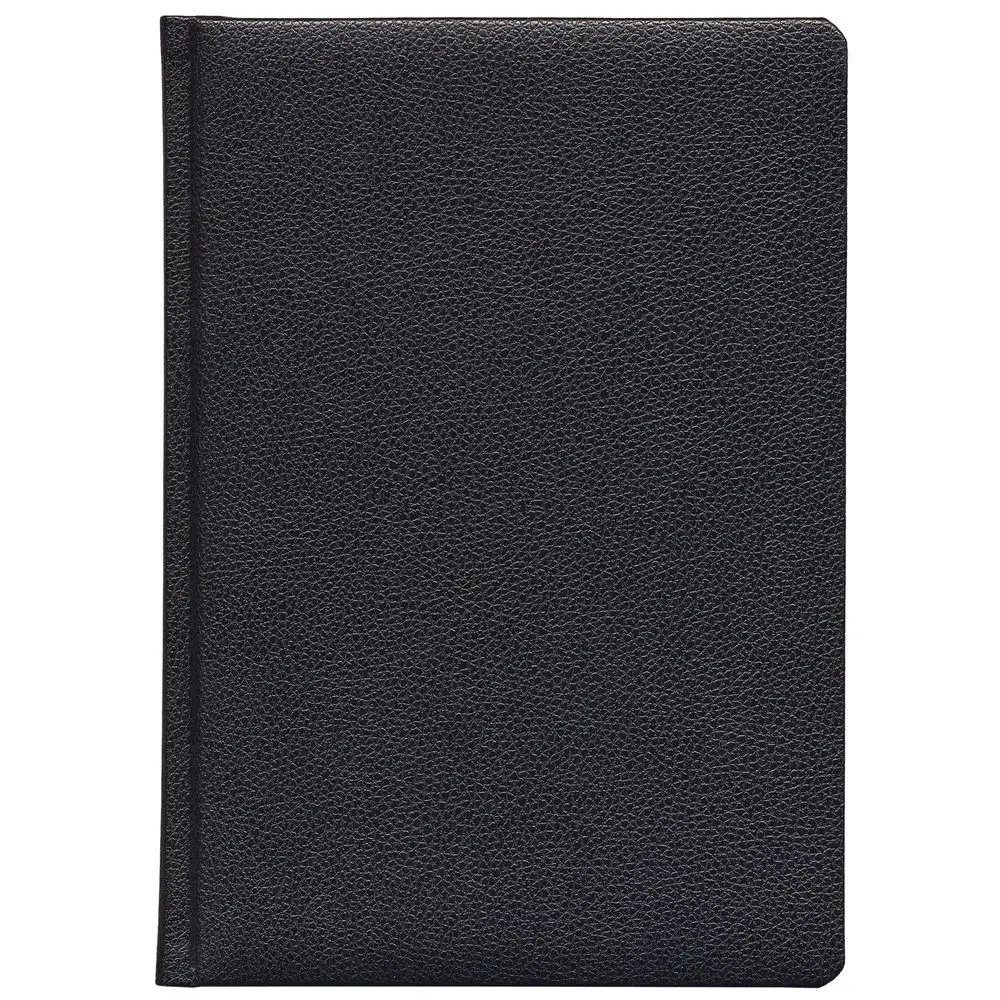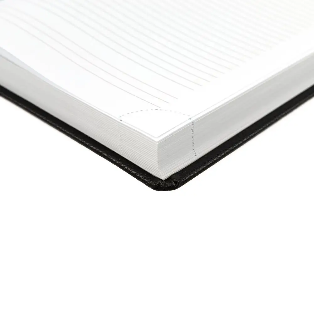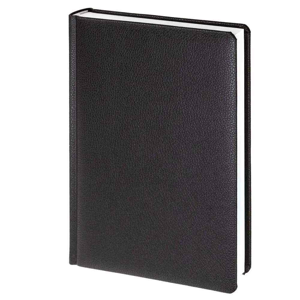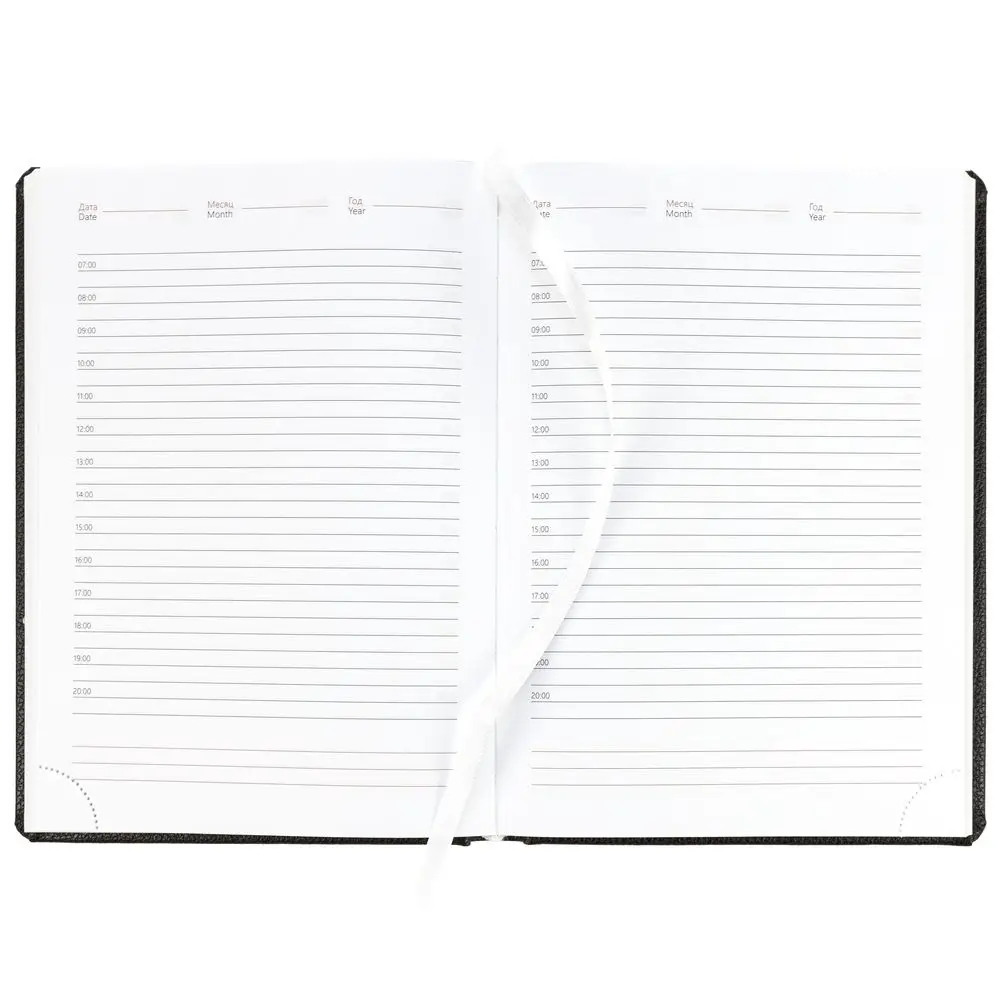 Ежедневник в твердой обложке c поролоном, выполнен из материала La Fite, черный АА, дополнен ляссе черного цвета и прошивкой по периметру обложки.