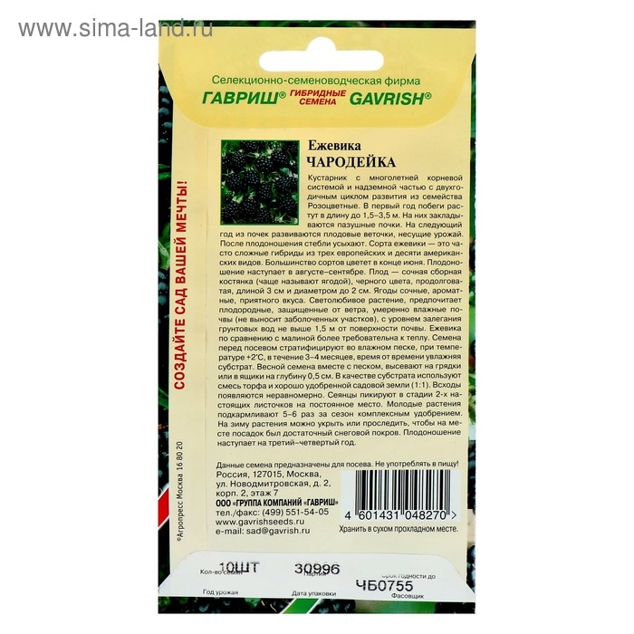 Семена Ежевика "Чародейка", 10 шт