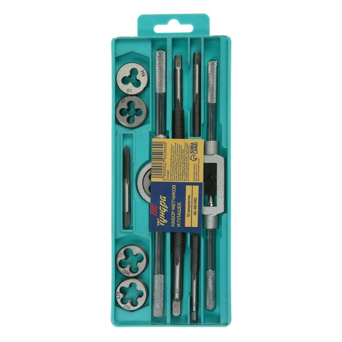 Набор метчиков и плашек ТУНДРА, М6 - М12, 12 предметов