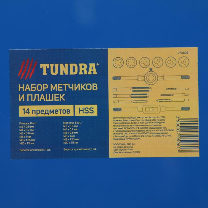 Набор метчиков и плашек ТУНДРА, М3 - М10, 14 предметов