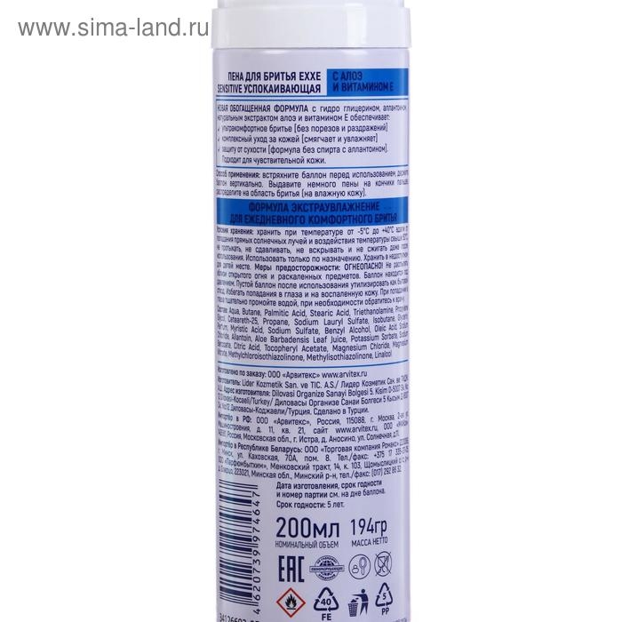 Пена для бритья Exxe Sensitive, для чувствительной кожи, 200 мл