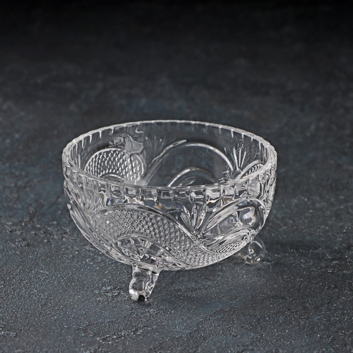 Конфетница стеклянная на ножках Доляна «Венеция», 200 мл, 10×6 см
