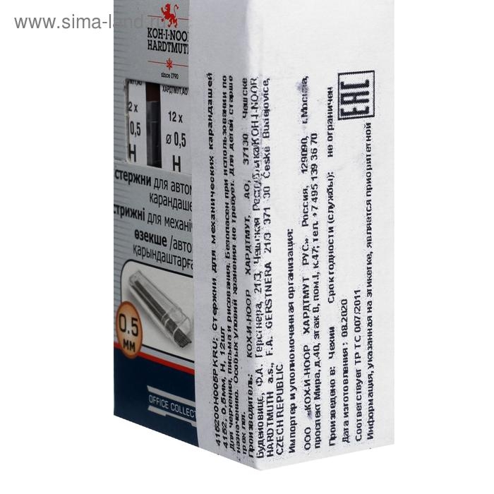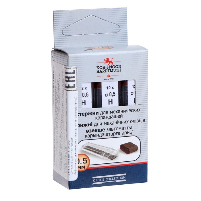Грифели для механических карандашей 0.5 мм, Koh-I-Noor 4152 Н, 12 штук, в футляре