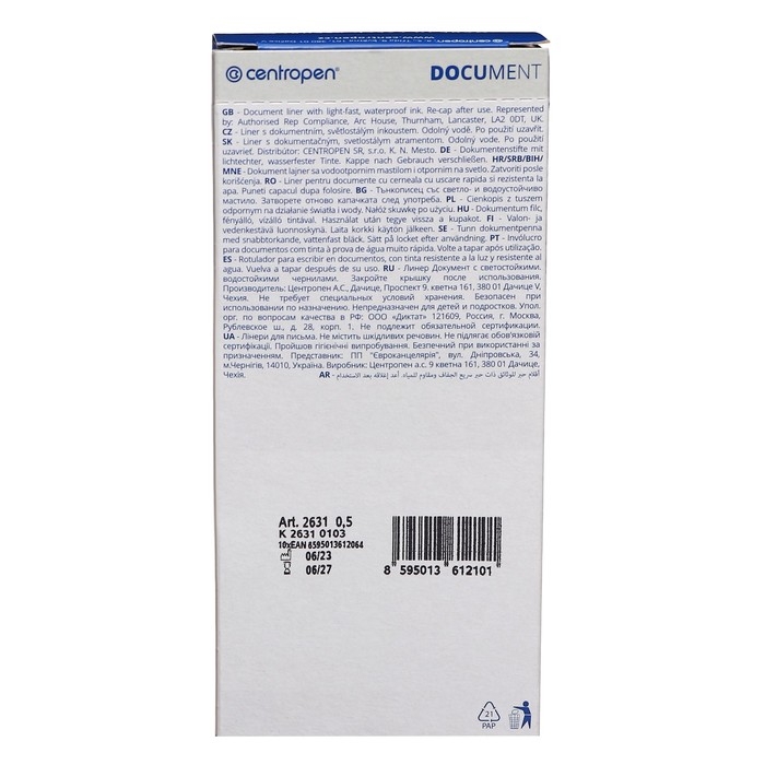 Centropen 2631 — светостойкий линер для документов с эргономичной зоной обхвата.