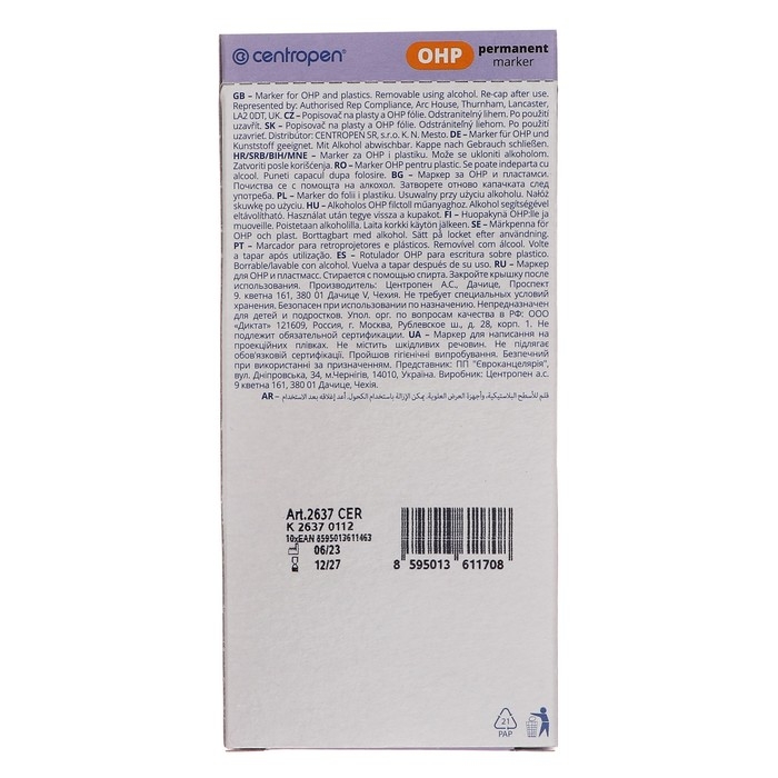Centropen 2637 — это перманентный маркер, пишущий на непористых поверхностях.