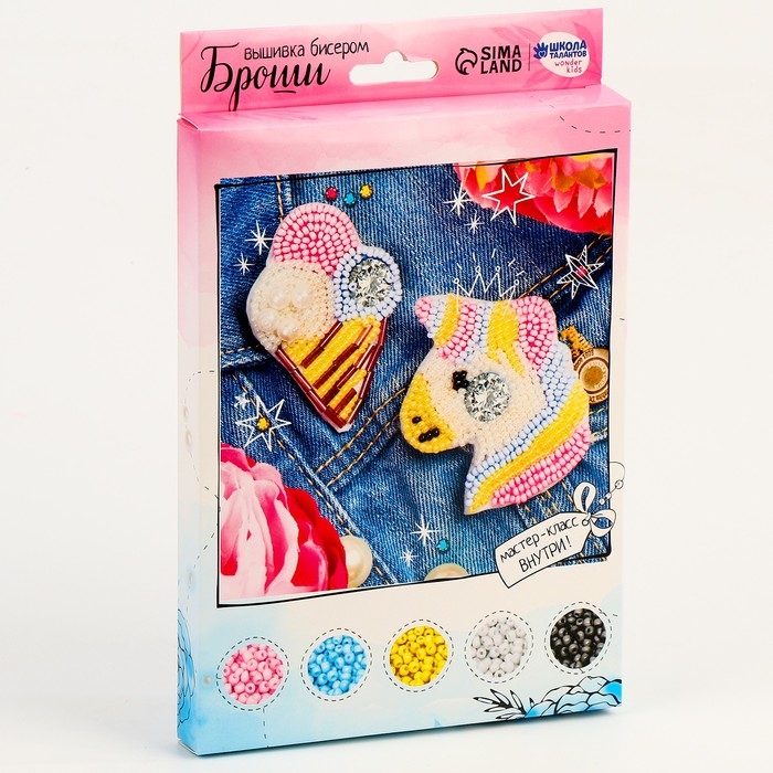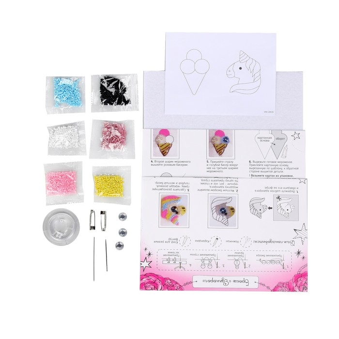 Вышивка бисером. Брошь «Единорог и мороженое», набор для творчестваа