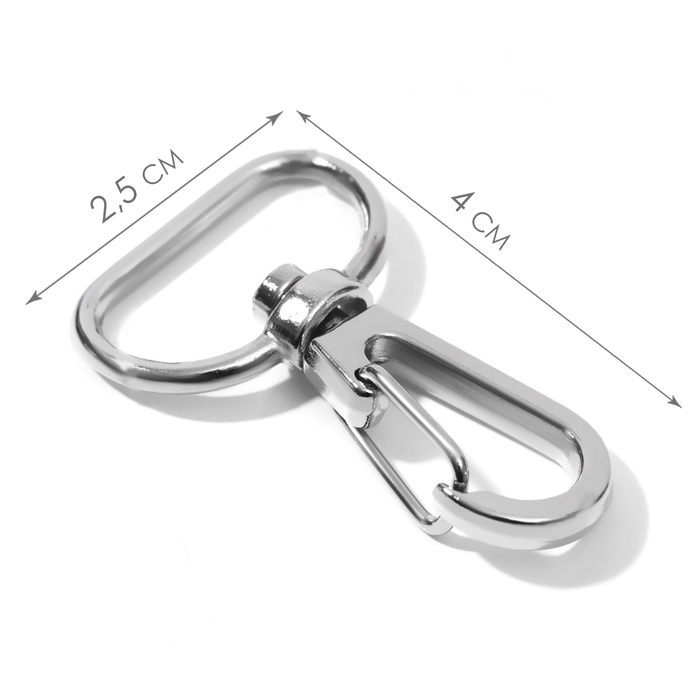 Карабин металлический, 40 × 25 мм / 21 × 2 мм, 10 шт, цвет серебряный
