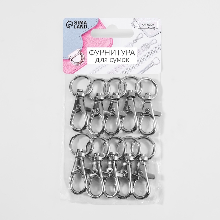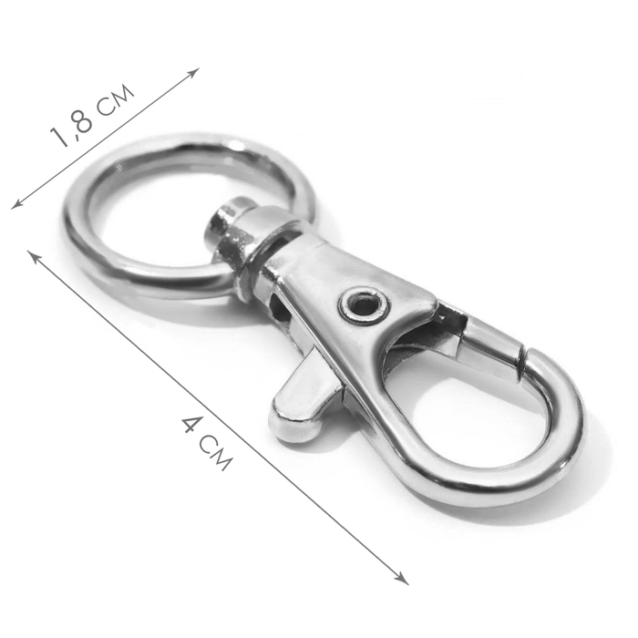 Карабин металлический, 40 × 18 мм / 12 × 2,3 мм, 10 шт, цвет серебряный