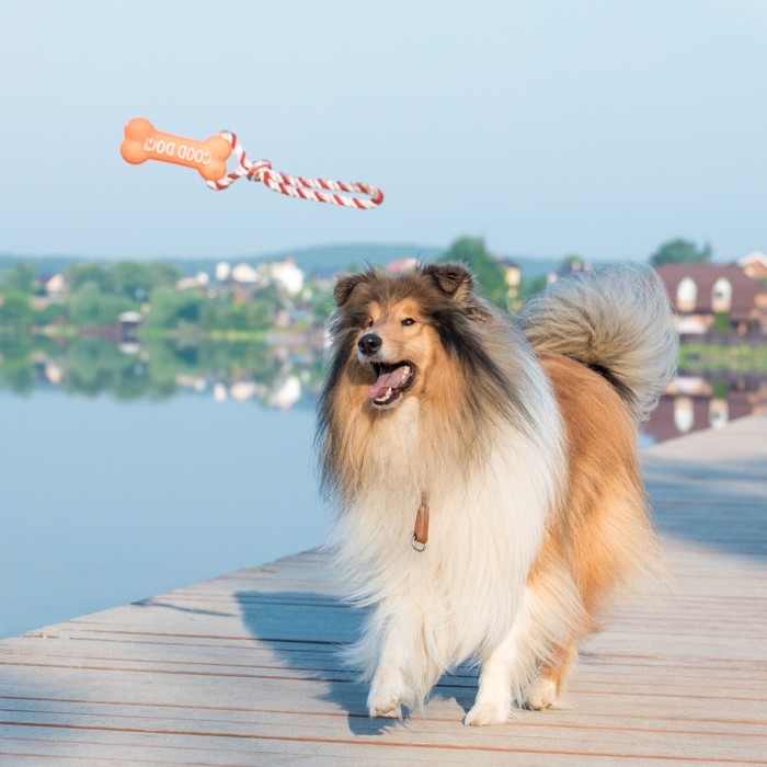Игрушка 'Кость' из резины с ручкой из каната - это отличный выбор для активных собак, которые обожают игры и жевание! С мягкой резиновой текстурой и прочной ручкой из каната, эта игрушка обеспечивает отличное сцепление и долговечность.