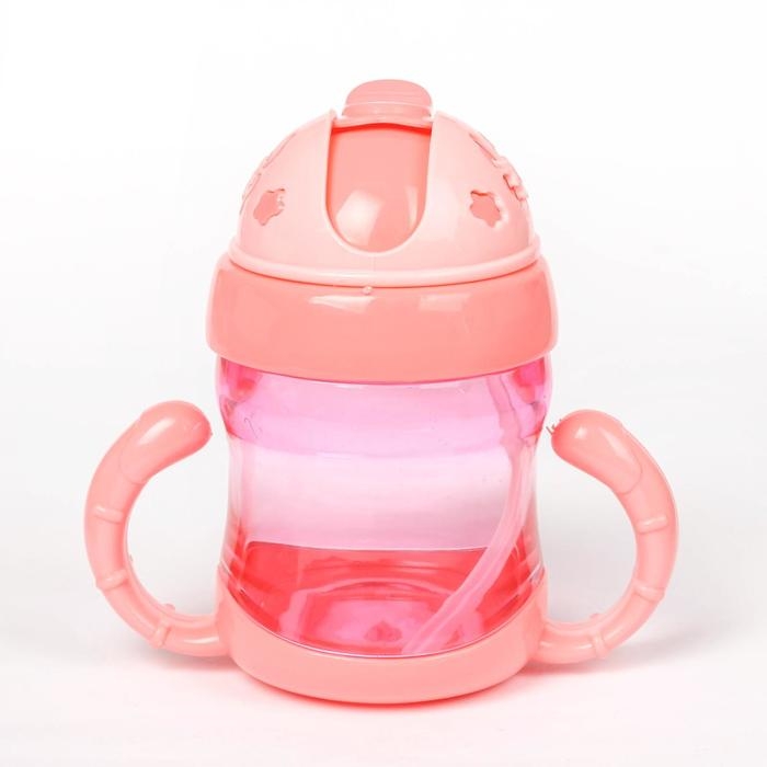 Поильник детский с силиконовой трубочкой, 200 мл., с ручками, цвета МИКС