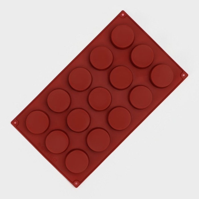 Форма для выпечки Доляна «Фигуры.Круг», силикон, 29×17×2 см, 15 ячеек (d=4,2 см), цвет коричневый
