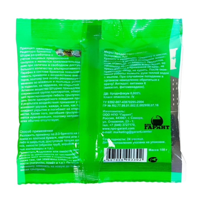 Парафинированные брикеты от грызунов Штурм, пакет 100 г