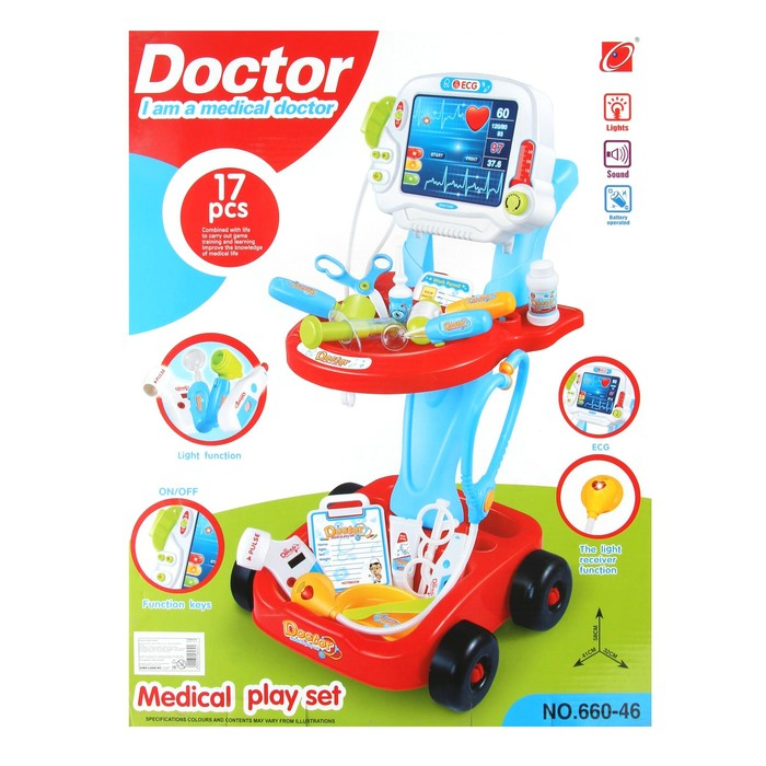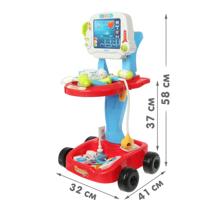 Игровой набор доктора в тележке «Лечим быстро», 17 предметов