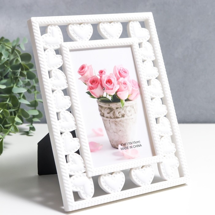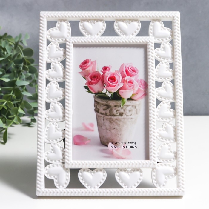 Фоторамка пластик 10х15 см "Сердечность" белая 22,5х17 см