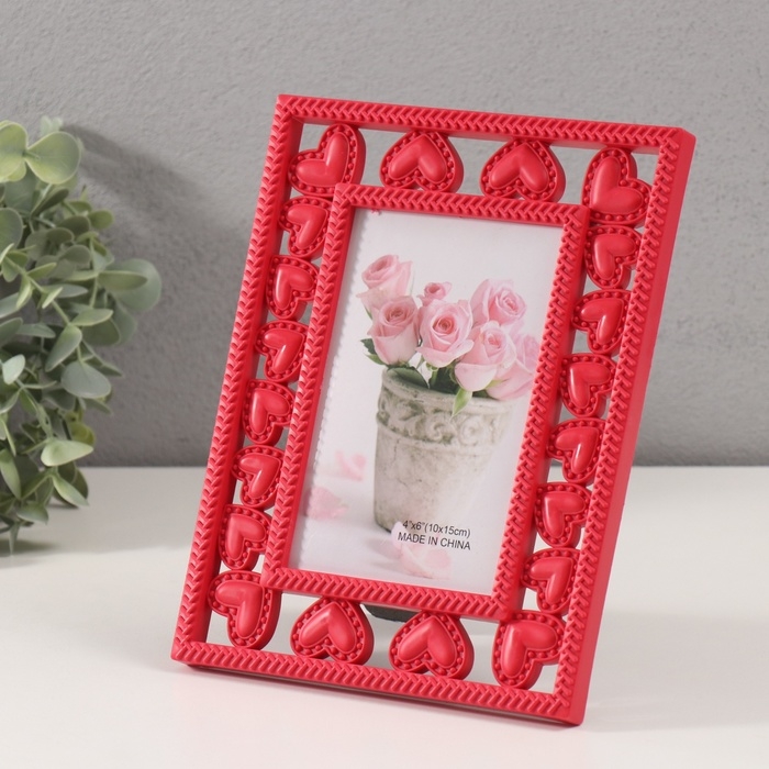 Фоторамка пластик 10х15 см "Сердечность" красная 22,5х17 см