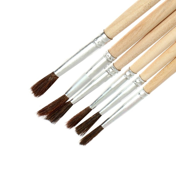 Набор кистей, щетина, плоские, 6 штук: № 1, 2, 3, 4, 5, 6, с деревянными ручками, на блистере