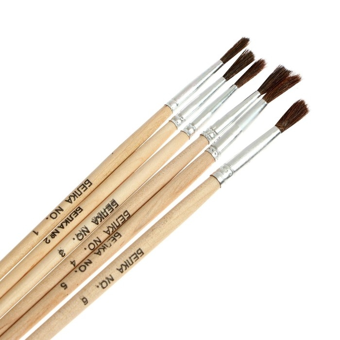 Набор кистей белка круглые 5 штук (№1,2,3,4,5) с деревянными ручками на блистере