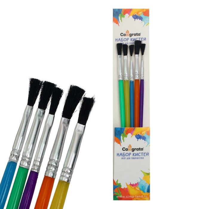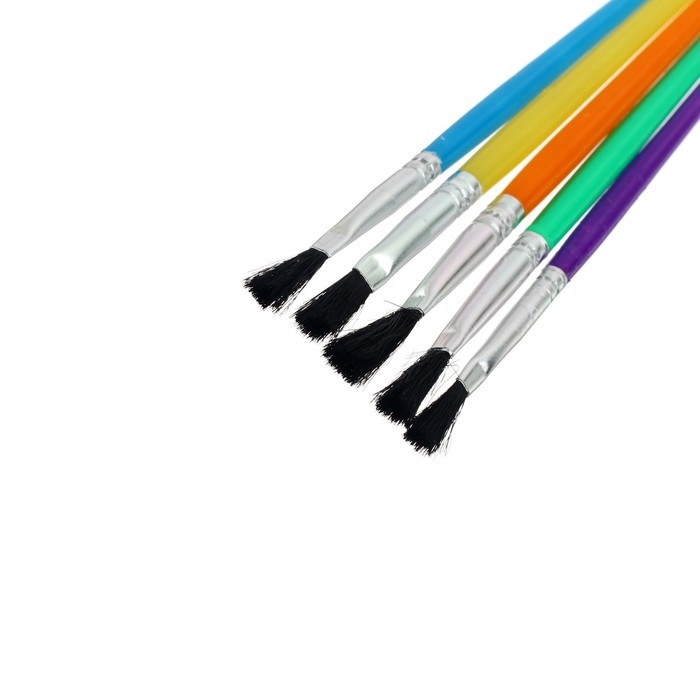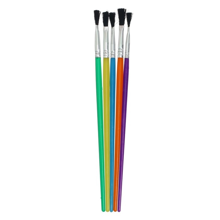 Набор кистей нейлон 5 штук, плоские, с пластиковыми цветными ручками