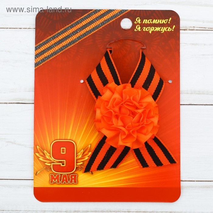 Значок с лентой и оранжевым цветком на День Победы «9 Мая», 10 х 12 см
