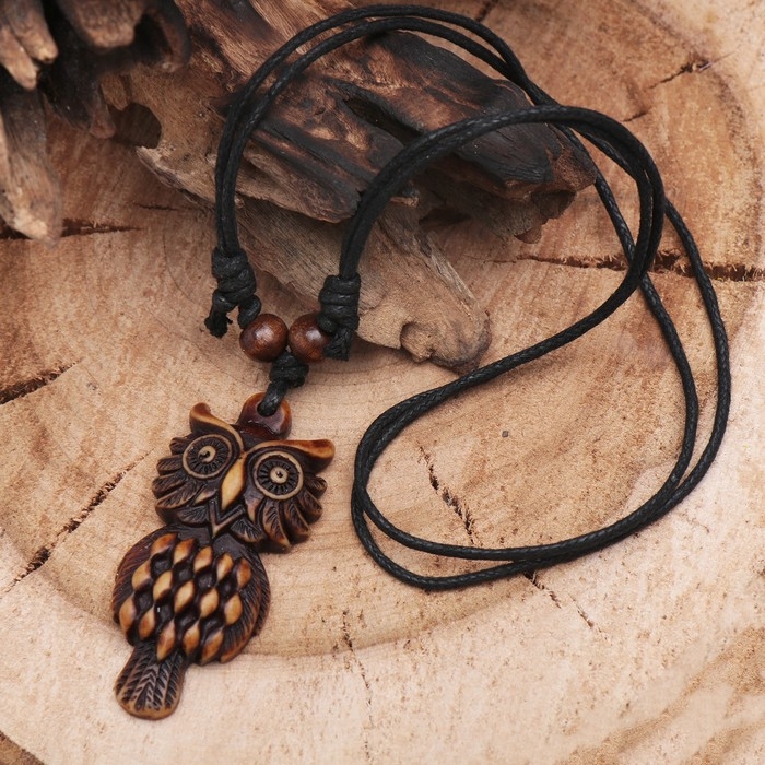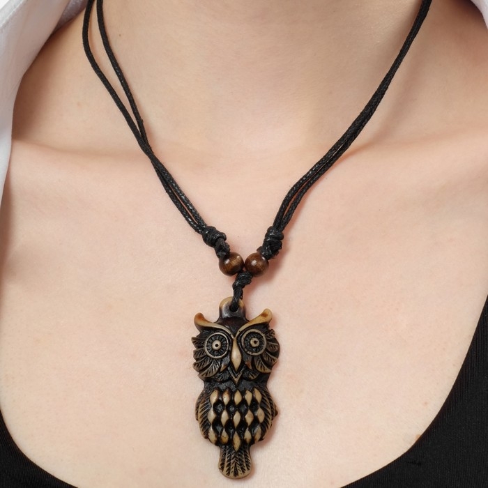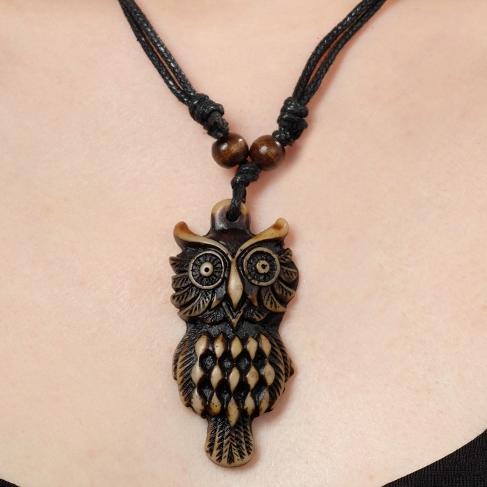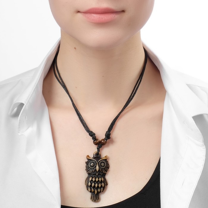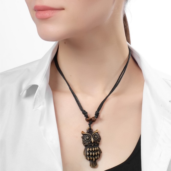 Кулон на шнурке «Филин», цвет коричнево-чёрный на чёрном шнурке, 80 см