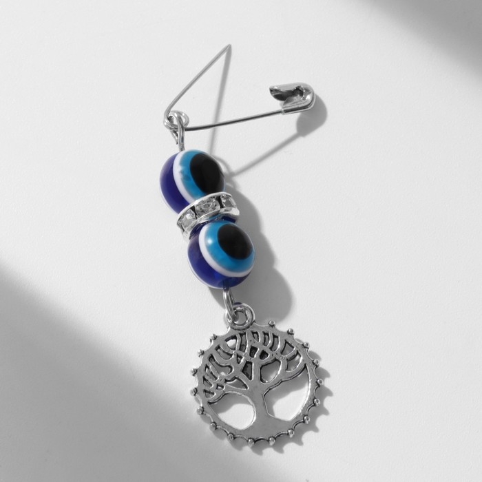 Булавка-оберег от сглаза «Дерево семейного счастья», 2,2 см, цвет синий в серебре