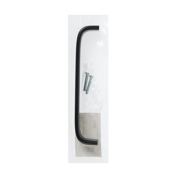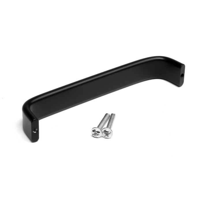Данная дверная ручка представляет собой неподвижную скобу, которая крепится к поверхности мебели с помощью двух винтов. Модель выполнена из прочного алюминия и имеет чёрный цвет.