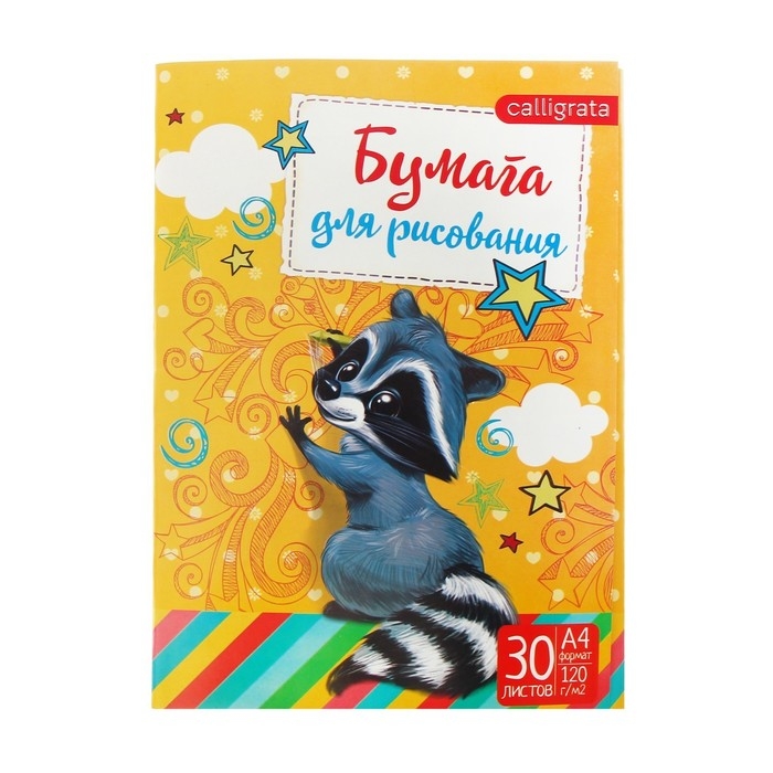 Папка для рисования А4, 30 листов "Енот", плотность 120г/м