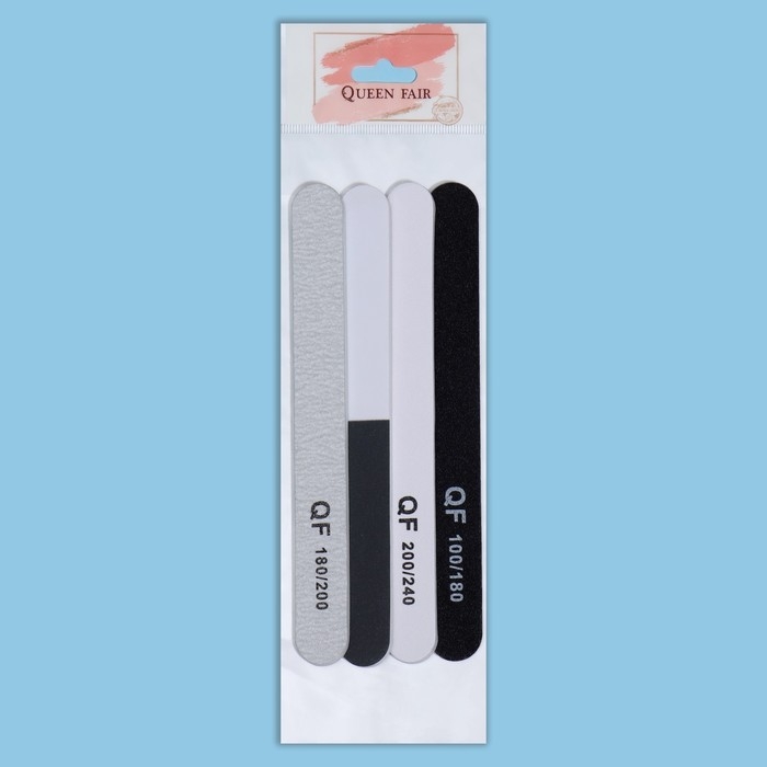 Пилки - наждаки, абразивность 100/180, 180/200, 200/240, 18 см, 4 шт, цвет чёрный/серый/белый