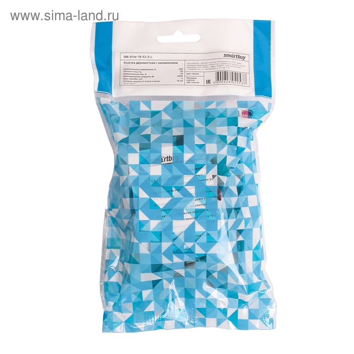 Розетка Smartbuy "Венера", двухместная, керамика, 16 А , с заземлением, белая