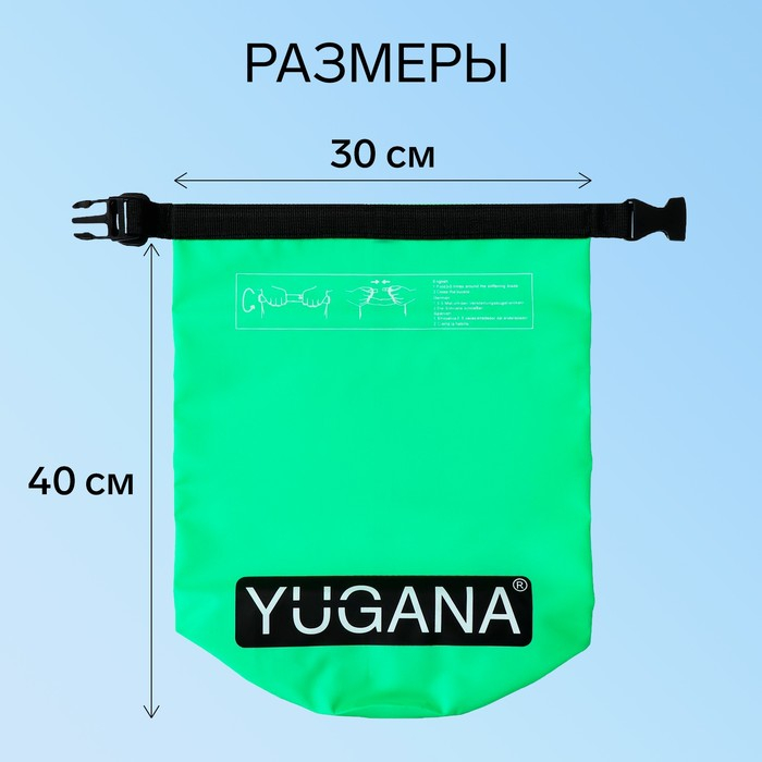Гермомешок YUGANA, ПВХ, водонепроницаемый 5 литров, один ремень, зеленый
