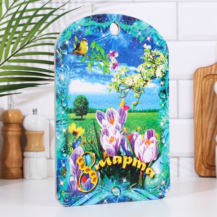 Доска разделочная большая "8 марта. Цветы", 19,5×27,5 см