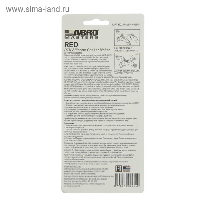 Герметик прокладок ABRO MASTERS красный, силиконовый, высокотемпературный, 85 г, 11-AB-CH-RE-S