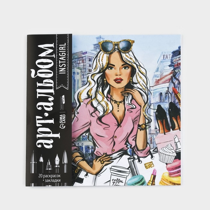 Раскраска - антистресс, альбом Insta-girl, 20 стр.