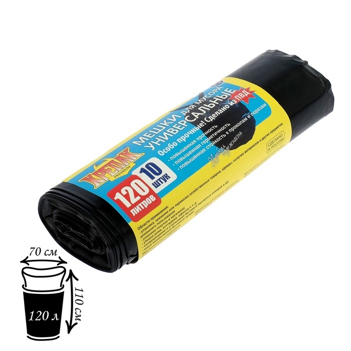 Мешки для мусора «КРЕПАК», 120л, ПВД, 40 мкм, 70×110 см, 10 шт, цвет чёрный