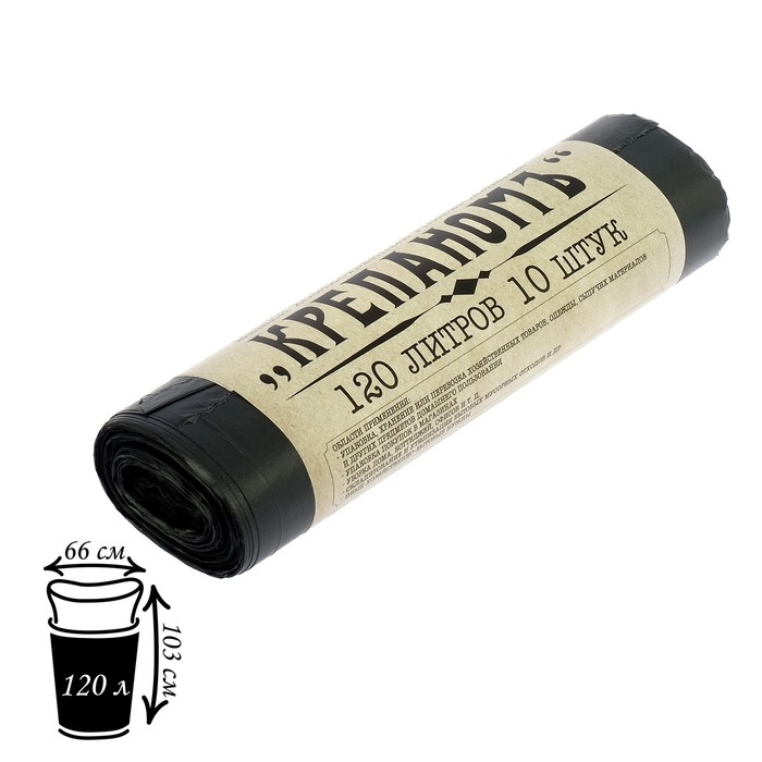 Мешки для мусора «КРЕПАНОМЪ», 120 л, ПНД, 12 мкм, 66×103 см, 10 шт, цвет чёрный