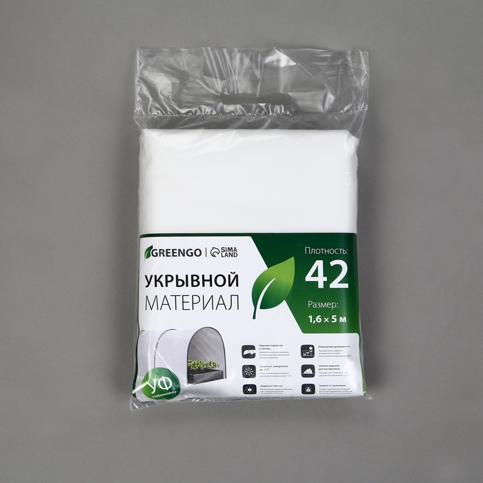 Материал укрывной, 5 × 1.6 м, плотность 42 г/м², спанбонд с УФ-стабилизатором, белый, Greengo, Эконом 30%