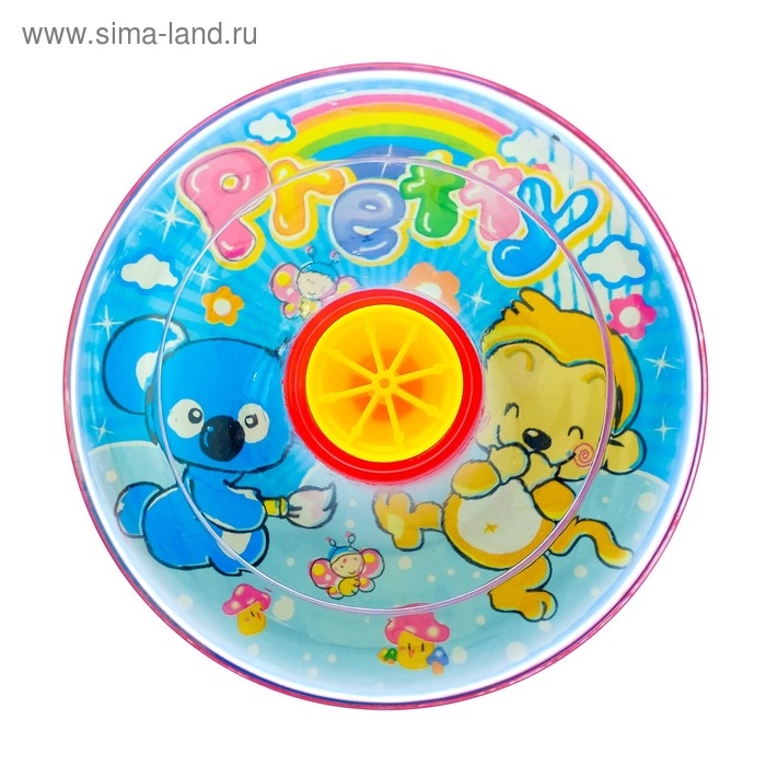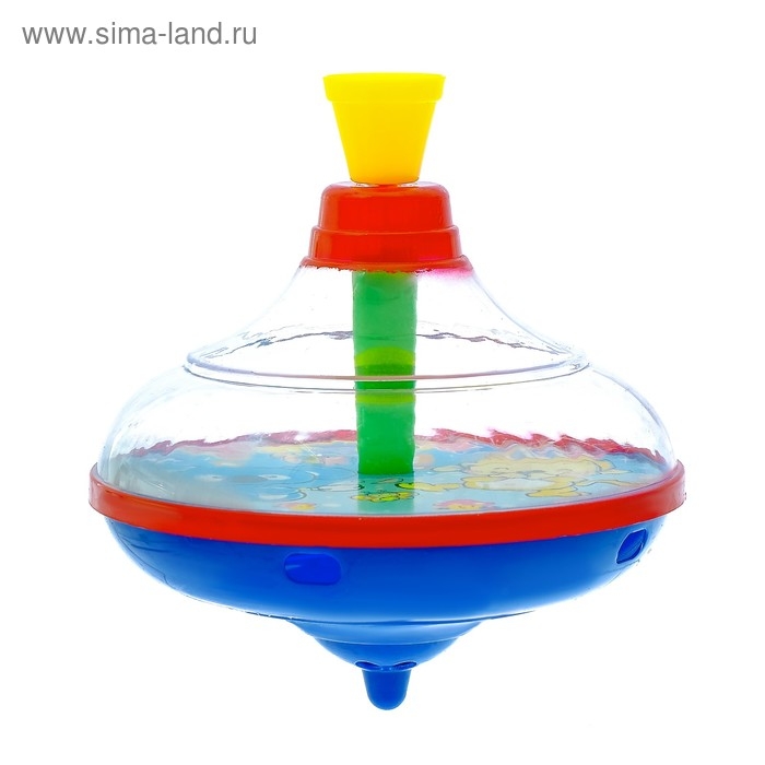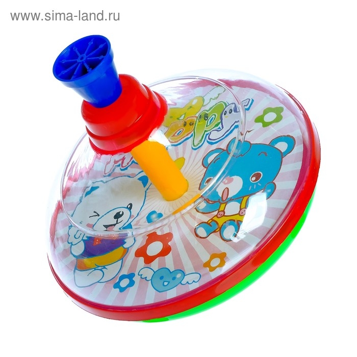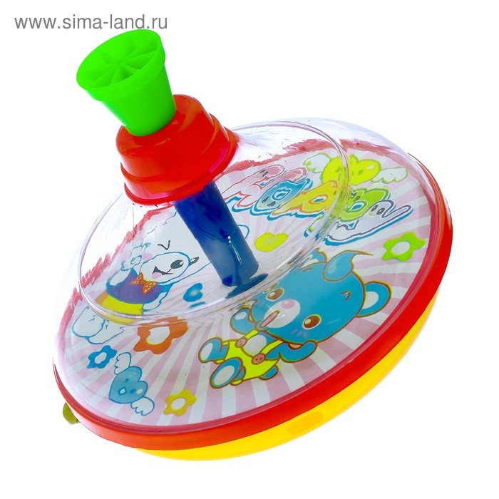- Чтобы раскрутить юлу, нужно циклично тянуть ручку вверх, а затем опускать вниз. При вращении картинка крутится в сторону корпуса игрушки.