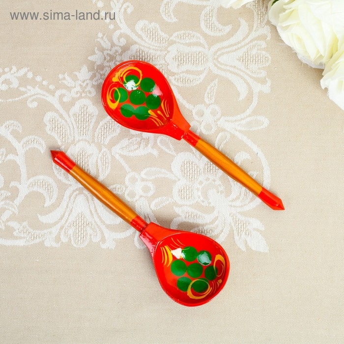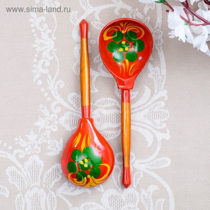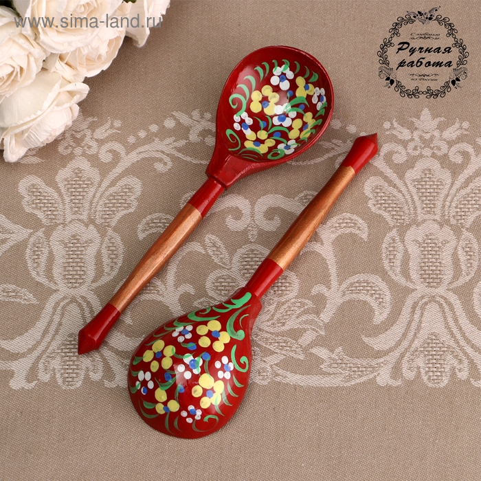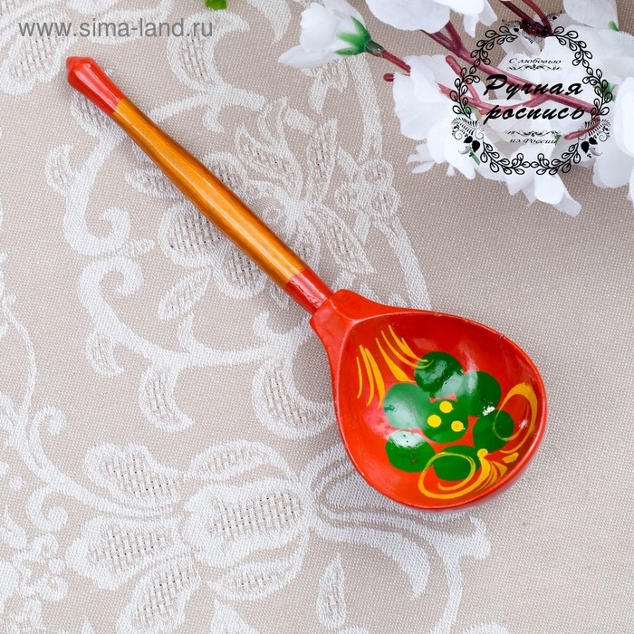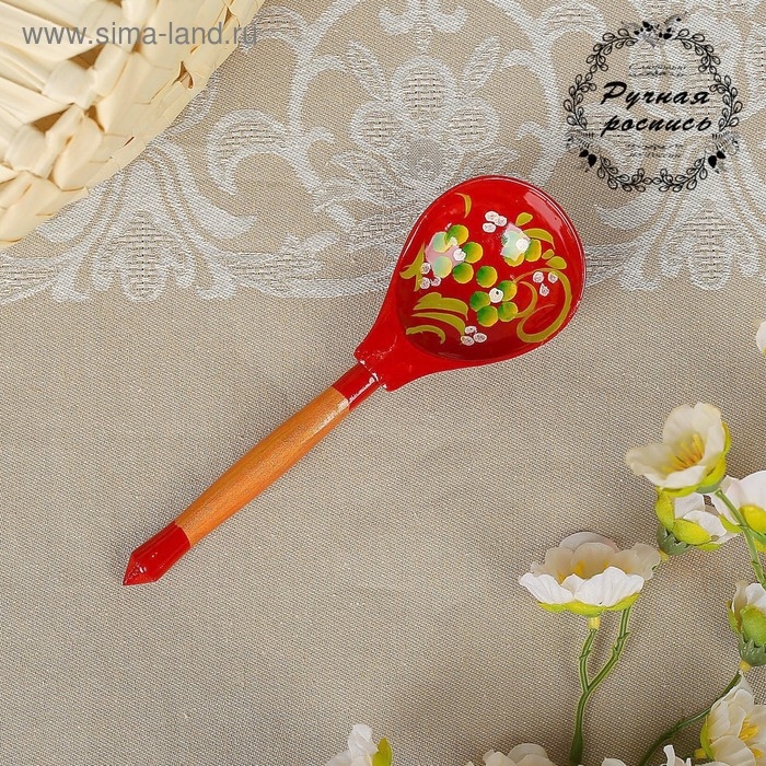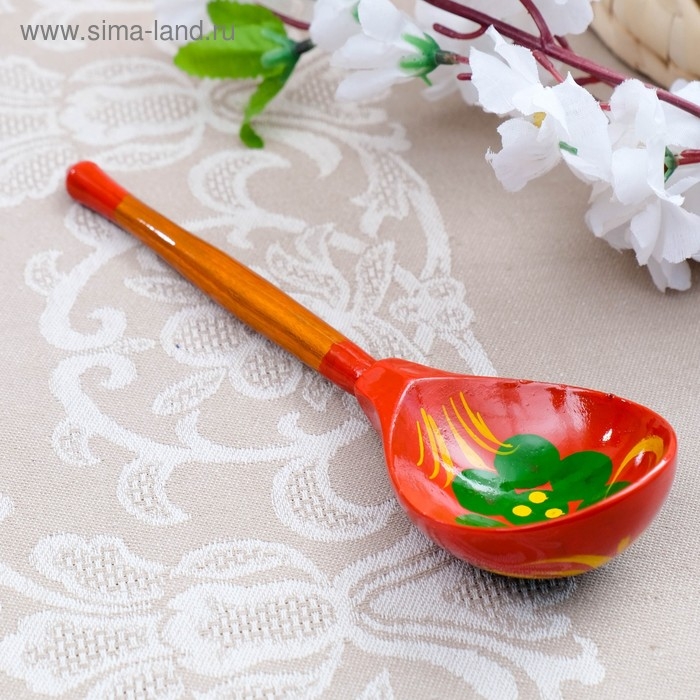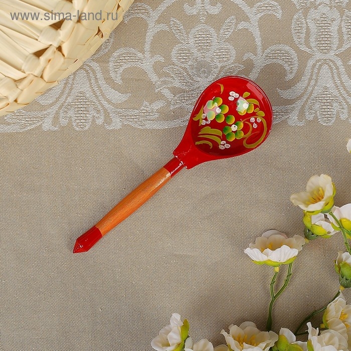 Ложка деревянная "Краснушка", полубасок, красный фон
